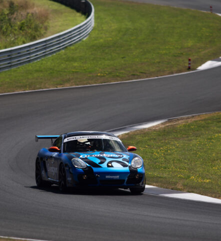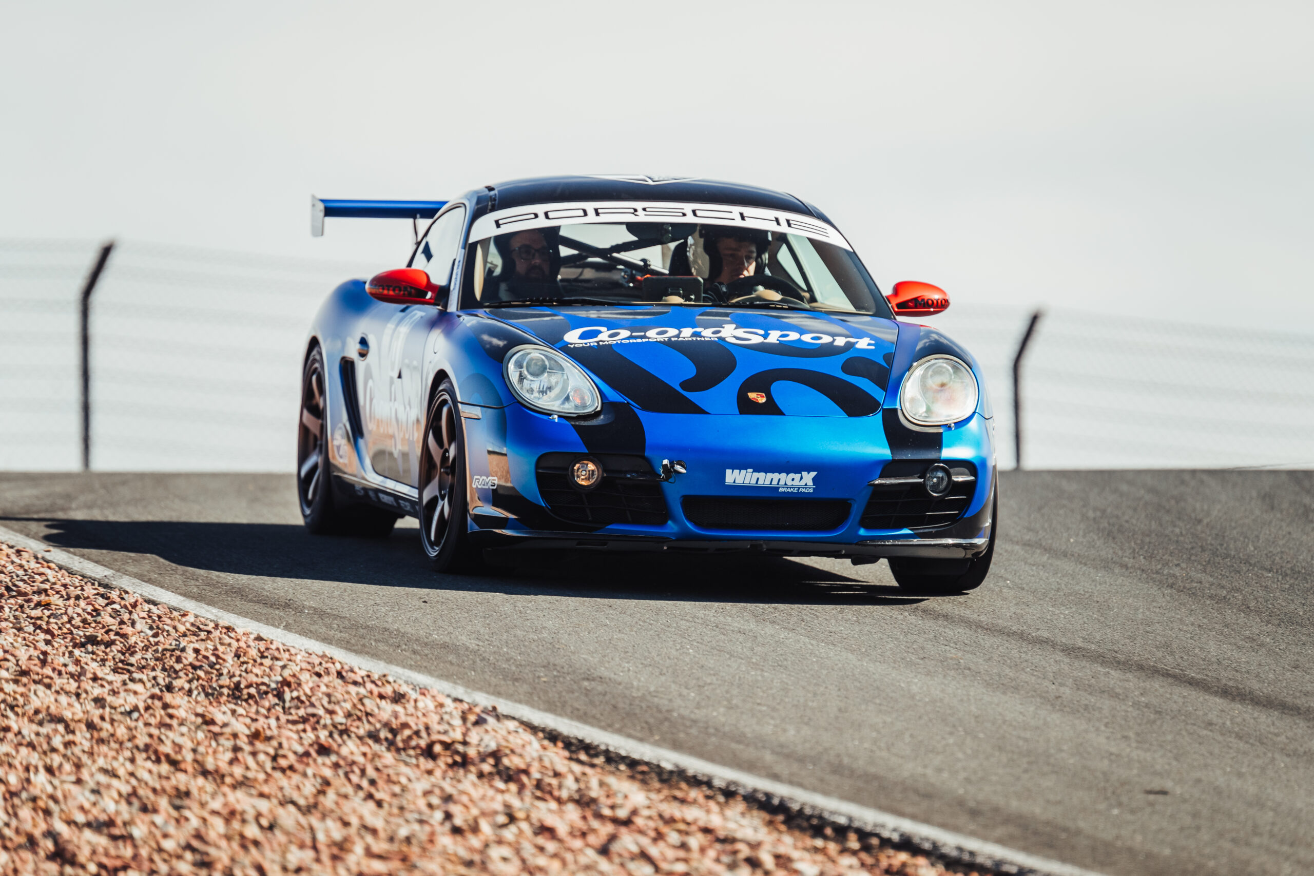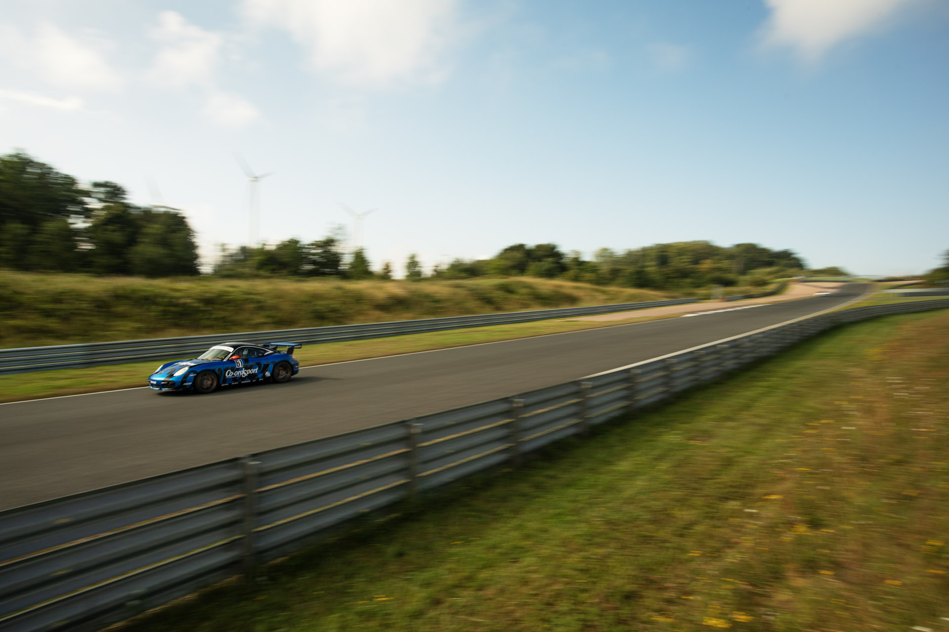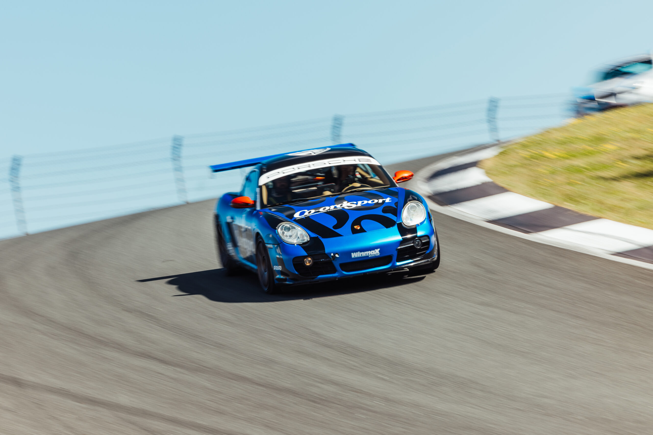 Het weer werkte mee: afwisselend bewolkt met zonnige momenten, en precies de juiste temperatuur voor mens en machine. Het gaf ons ook de kans om prachtige foto’s van de Cayman te maken — de blauwe livery knalde echt van het asfalt af.