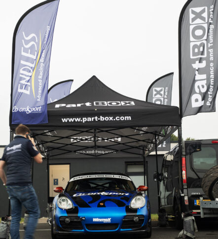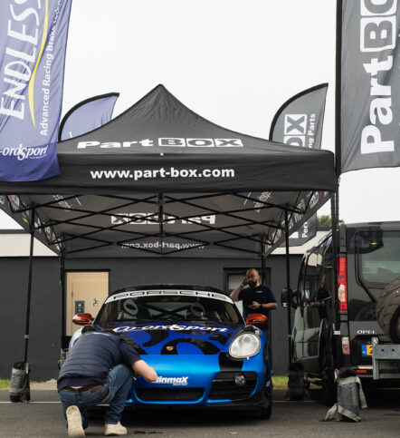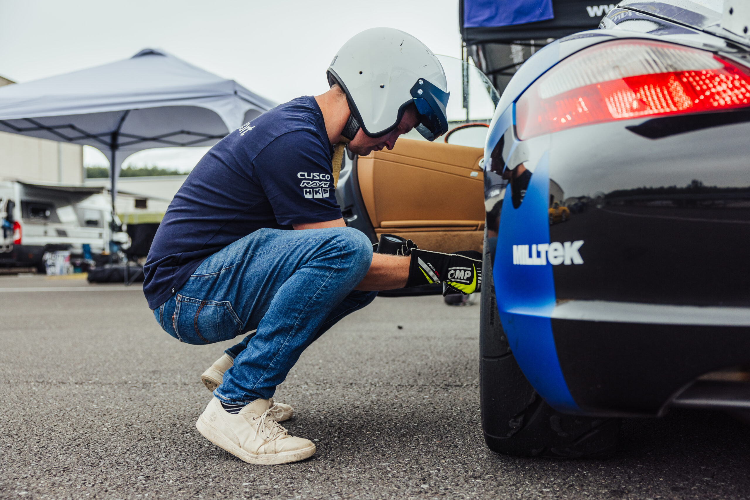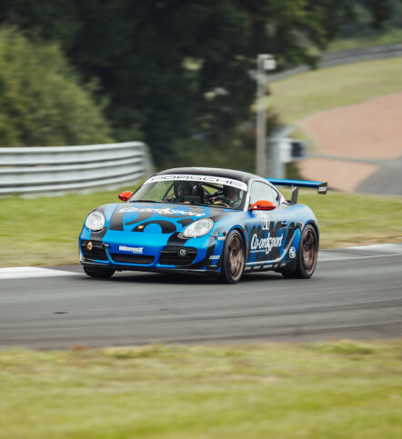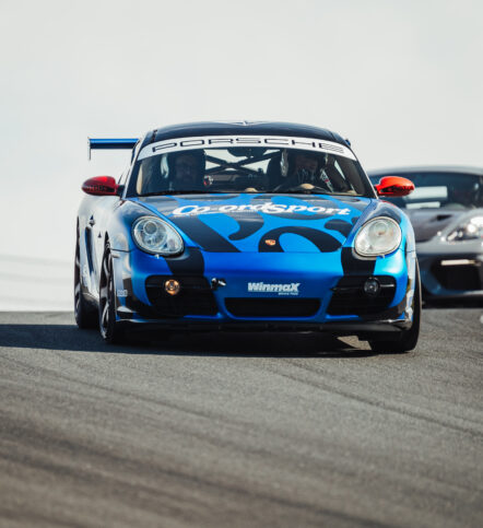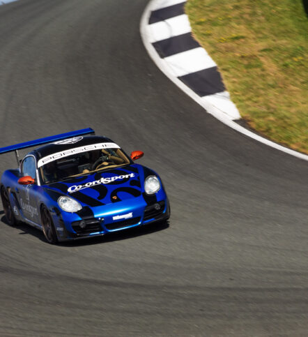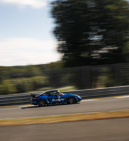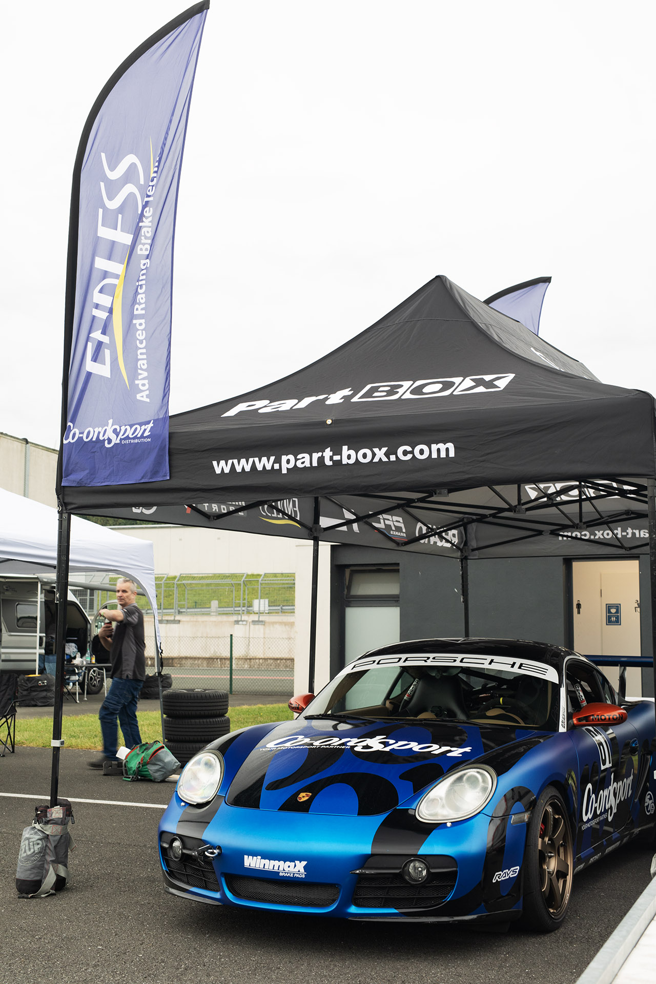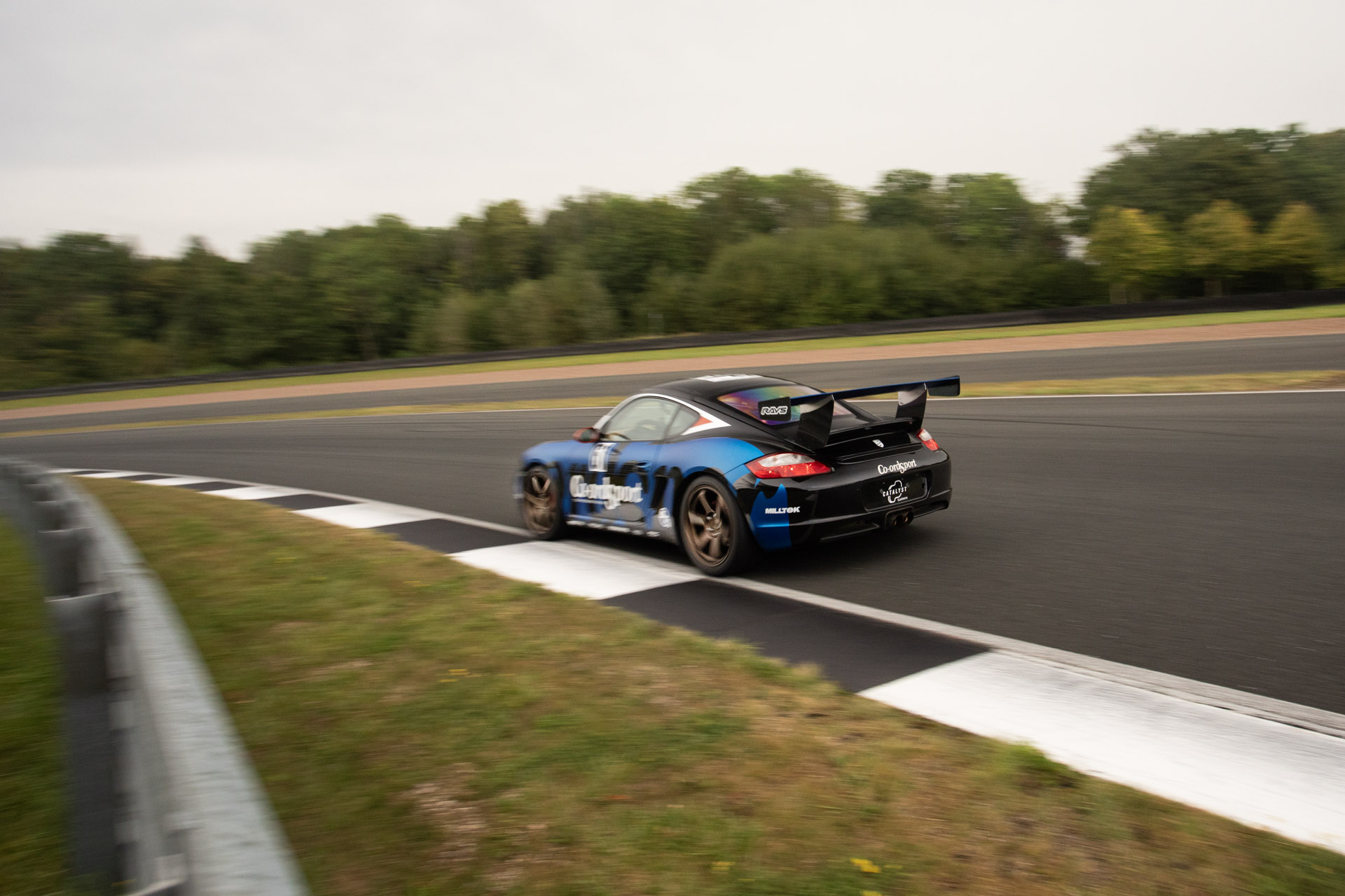 Het weer werkte mee: afwisselend bewolkt met zonnige momenten, en precies de juiste temperatuur voor mens en machine. Het gaf ons ook de kans om prachtige foto’s van de Cayman te maken — de blauwe livery knalde echt van het asfalt af.