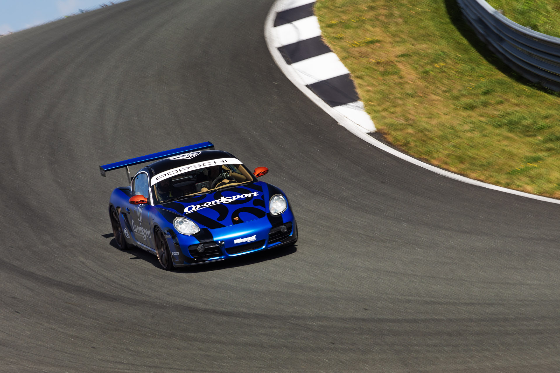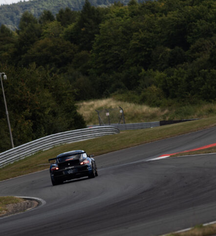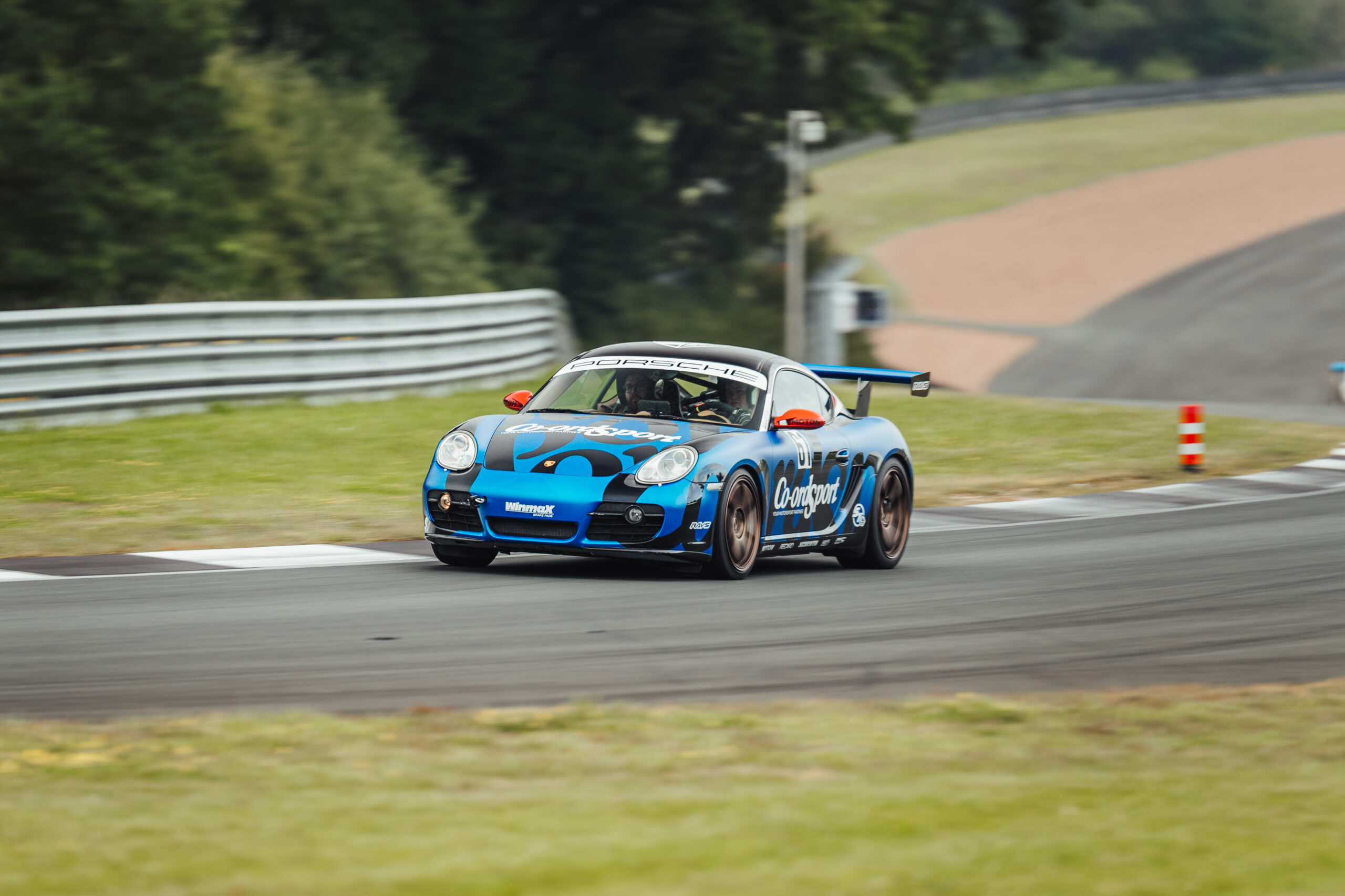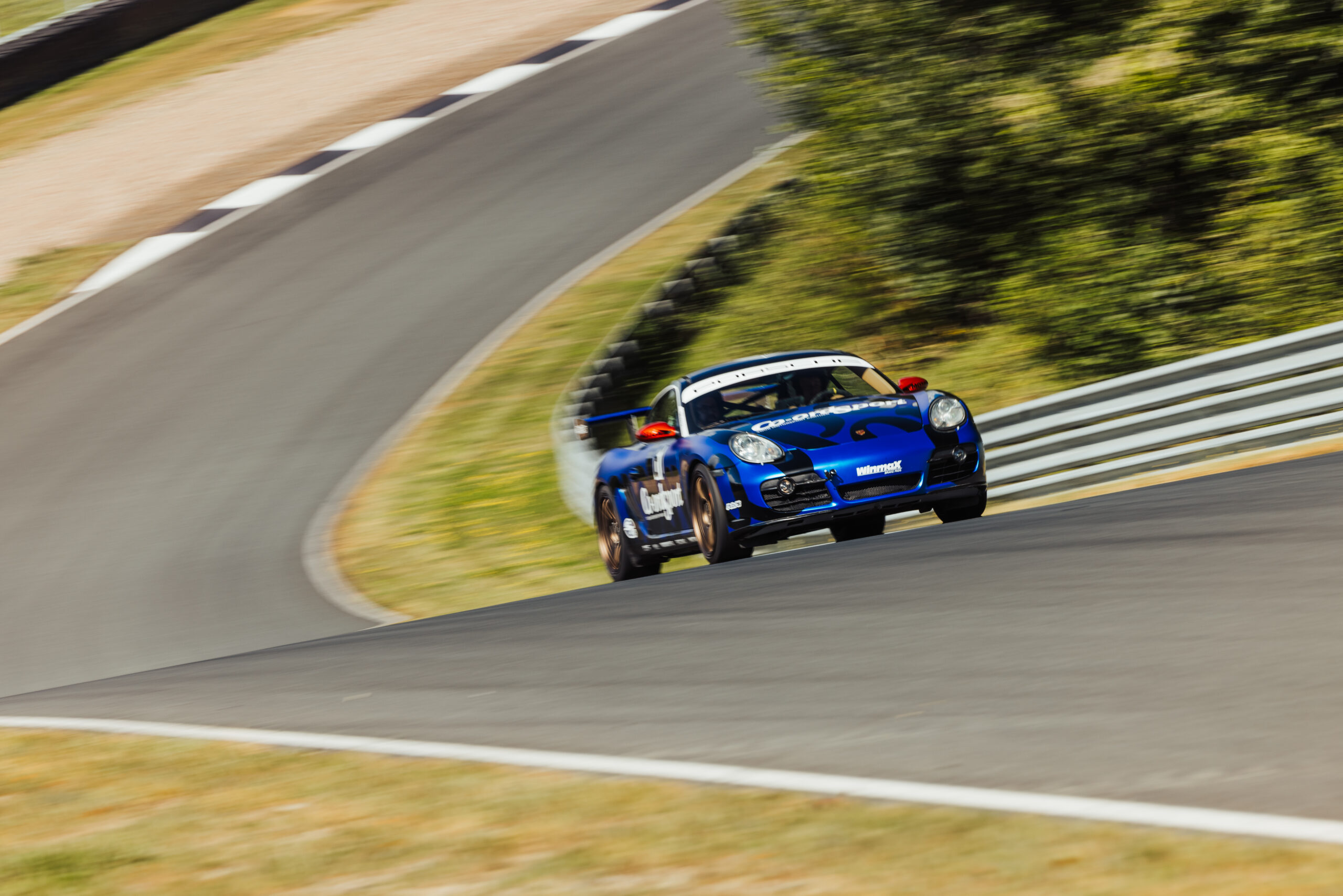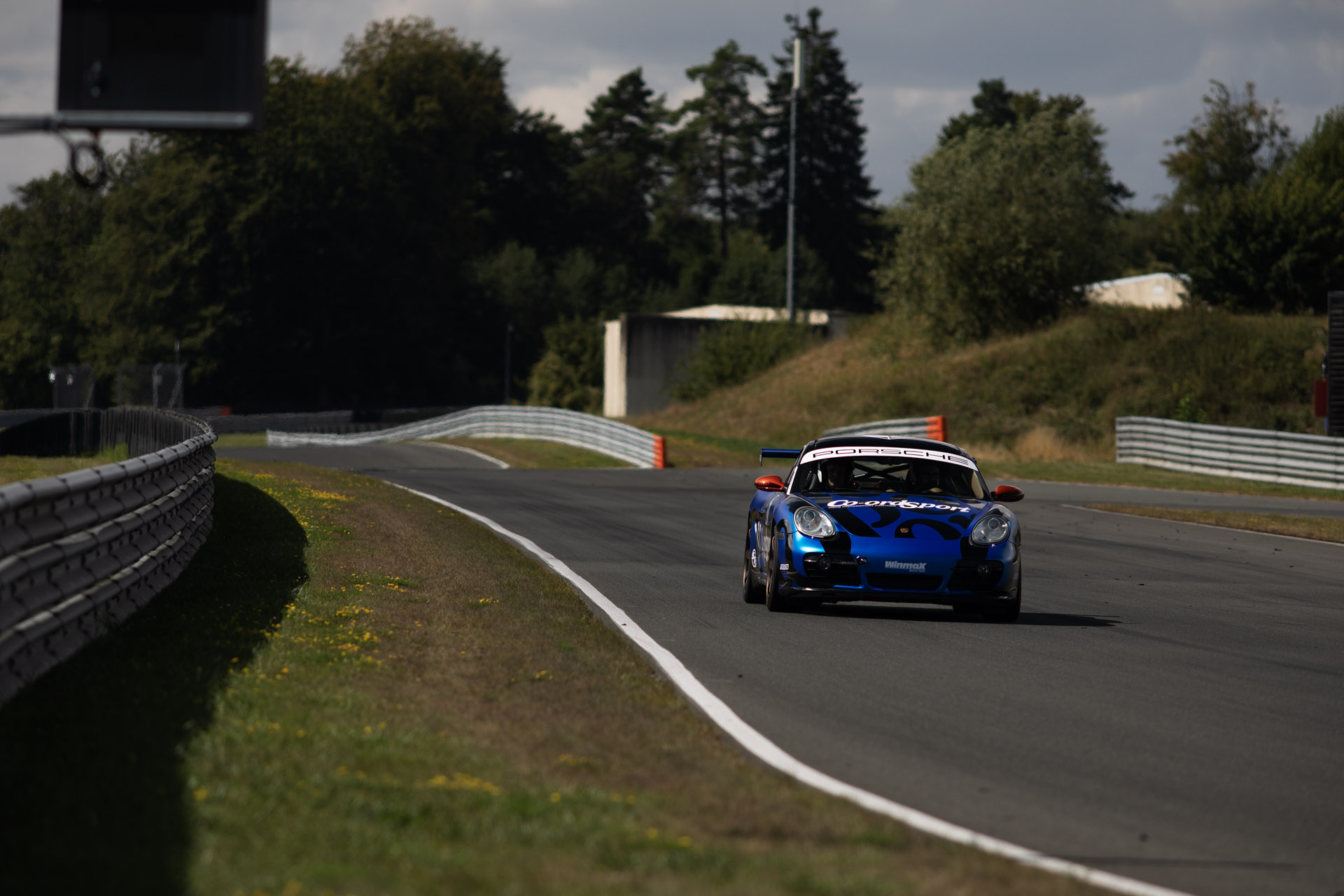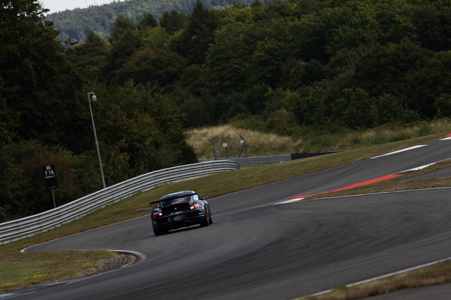 Buiten onze groeiende circuit ervaring en baankennis van verschillende Europese circuits was de Cayman S natuurlijk de ster van de dag. Al vanaf de eerste meters op Bilster Berg merkten we hoe goed de auto in zijn element was. De Winmax-remblokken gaven keer op keer het vertrouwen dat je nodig hebt bij hard aanremmen voor de bochten, terwijl de Heigo-rolkooi de hele auto een solide, stijve basis gaf én ons dat extra gevoel van veiligheid bood.