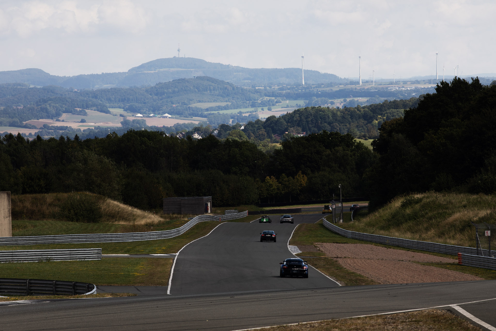 Het was onze eerste keer op Bilster Berg, en al snel bleek dat dit circuit meer is dan zomaar een baan: het is een ervaring. Het hoogteverschil is indrukwekkend en de layout uitdagend. De Mausefalle is een afdaling die je maag even doet kriebelen: blind insturen, compressies, en telkens de balans van de auto zoeken. De Bilster Kuppe laat je even “in het niets kijken” wanneer je over de top gaat. Je voelt hoe belangrijk vertrouwen in je auto en je setup hier is. Elke ronde werd een beetje meer vertrouwd, en tegelijk bleef de baan ons uitdagen.